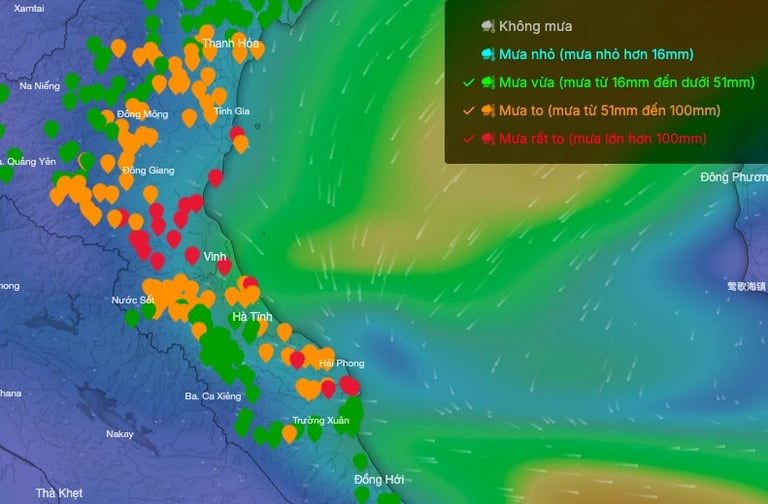 Trung tâm Dự báo khí tượng thủy văn quốc gia ghi nhận, từ sáng 17.8, khu vực từ Thanh Hóa đến Quảng Trị đã có mưa vừa, mưa to, có nơi mưa rất to. Lượng mưa tính từ 7 giờ đến 15 giờ ngày 17.8 nhiều nơi trên 80 mm như: trạm Vinh (Nghệ An) là 201 mm; trạm Hồ Khe Cò (Hà Tĩnh) là 81 mm...