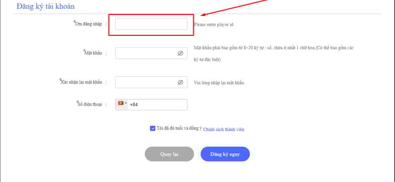 BƯỚC 1 : Bạn hãy đăng ký tài khoản tại công game quốc tế 88FC