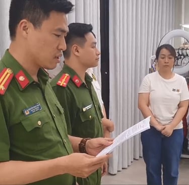 Công an đọc lệnh khám xét nơi livestream bán hàng của Nguyễn Thị Thu Hường